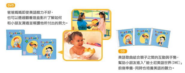 迪士尼美語世界-(Play Along!)跟著玩系列 (專門設計給剛開始學習美語的嬰兒與小小朋友 透過模仿他們所看到和聽到的有趣事物來學習美語)(DVD3片裝) -=-=-=-=-=-=-=-=-=-=-=-=-=-=-=-=-=-=-=-=-=-=-=-=-=-=-=-=-=-=-=-=-=-=-=-= 軟體名稱:迪士尼美語世界-(Play Along!)跟著玩系列 (專門設計給剛開始學習美語的嬰兒與小小朋友 透過模仿他們所看到和聽到的有趣事物來學習美語)(DVD3片裝) 語系版本: 光碟片數:3片裝 破解說明: 系統支援:Windows 7/XP/Vista/DVD 播放機 軟體類型:幼兒教學 硬體需求:PC,DVD 播放機 更新日期:2011-09-15 官方網站: 中文網站: 軟體簡介: 銷售價格:$540元 -=-=-=-=-=-=-=-=-=-=-=-=-=-=-=-=-=-=-=-=-=-=-=-=-=-=-=-=-=-=-=-=-=-=-=-=     軟體簡介: 「跟著玩系列!(Play Along! )」的概念是「親身體驗式學習“Learning by doning”」 這套產品是專門設計給剛開始學習美語的嬰兒與小小朋友,透過模仿他們所看到和聽到的 有趣事物來學習美語。 小朋友會自然地透過使用16種玩具,親身體驗他們在影片中看到的遊戲來學習美語。即使 是小小孩也會喜歡這些依照他們發展階段而設計出來的活動。這套產品包含了簡單的美語 文法與結構。 小朋友透過33首CD歌曲和「迪士尼美語世界 (DWE) 」更為親近。將「跟著玩系列!(Play Along! )」與「迪士尼美語世界 (DWE) 」藍色或綠色系列一同使用,小朋友將會更有效率 地建立起美語的基礎。 -=-=-=-=-=-=-=-=-=-=-=-=-=-=-=-=-=-=-=-=-=-=-=-=-=-=-=-=-=-=-=-=-=-=-=-=