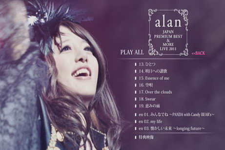 演唱會:alan 阿蘭 - JAPAN PREMIUM BEST & MORE LIVE 2011 (DVD9一片裝 此片售價250元)